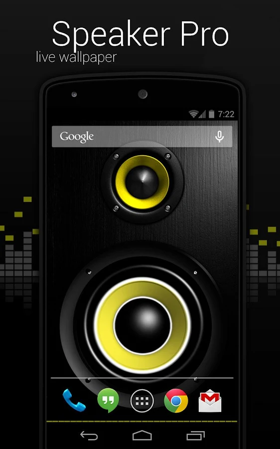 Screen Speaker Live Wallpaper. This is a realistic renderer of speakers. In your choice of several options for the speakers, enclosures and bottom visualizer.Application engine evaluates the output sound power of smartphone in selected frequency band, and then generated a splash speaker cone is proportional to the signal level.