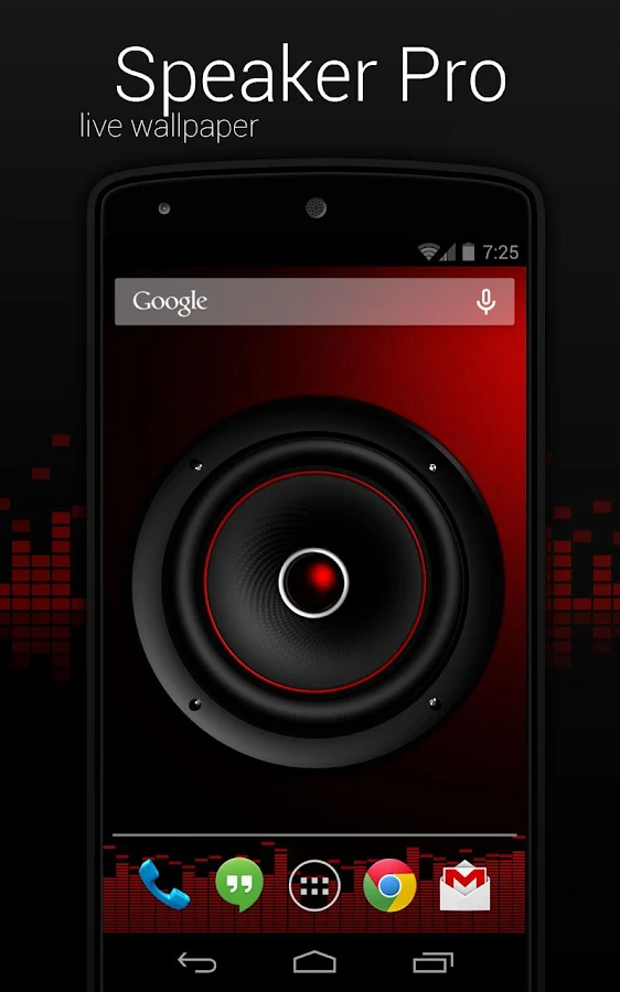 Screen Speaker Live Wallpaper. This is a realistic renderer of speakers. In your choice of several options for the speakers, enclosures and bottom visualizer.Application engine evaluates the output sound power of smartphone in selected frequency band, and then generated a splash speaker cone is proportional to the signal level.